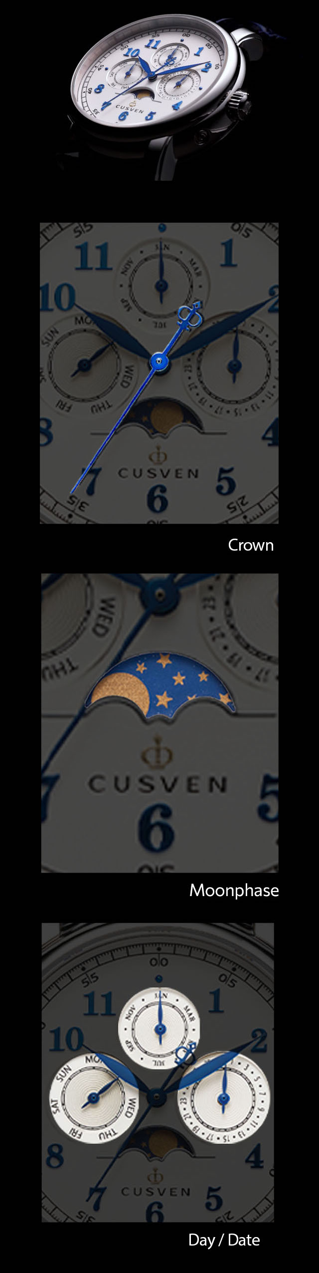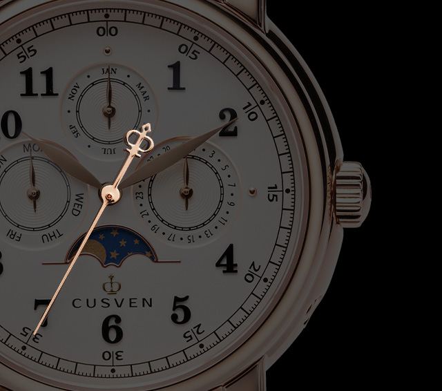저마다의 감정을 표현할 수 있는 얼굴처럼, 다이얼은 시계의 ‘얼굴’이며 고유의 표정과 메시지를 담고 있습니다. 커스벤은 시간을 표시하는 배경적 의미의 다이얼을 벗어나 그 이상의 메시지를 담기 위해 섬세한 터치로 다이얼을 디자인하고 있습니다. 최적의 컬러감과 느낌을 구현하려면 셀 수 없는 많은 샘플링 과정이 있어야 하며, 하나의 다이얼이 완성되기까지 약 43,200시간이 소요됩니다.