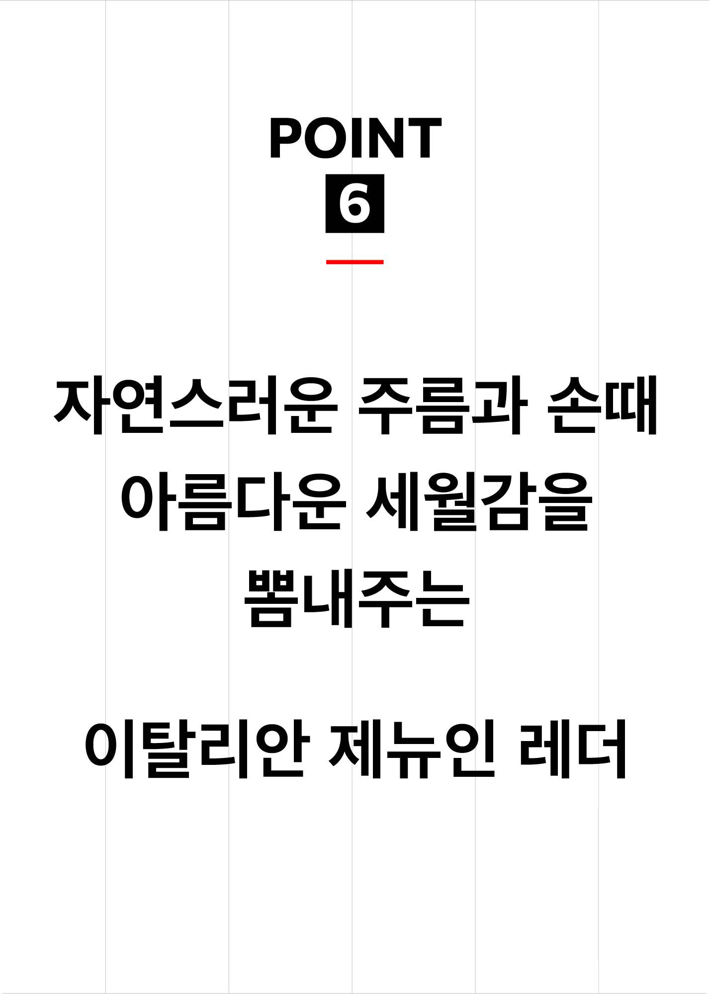 맨 처음 접할 때 느껴지는 강인한 가죽의 이미지는 사용할수록 부드러워지면서 당신의 손목을 편하게 감싸줍니다. 긴 세월을 이겨낼 만큼 강한 가죽의 내구성은 당신의 손때가 묻어 더욱 아름답게 빛납니다.